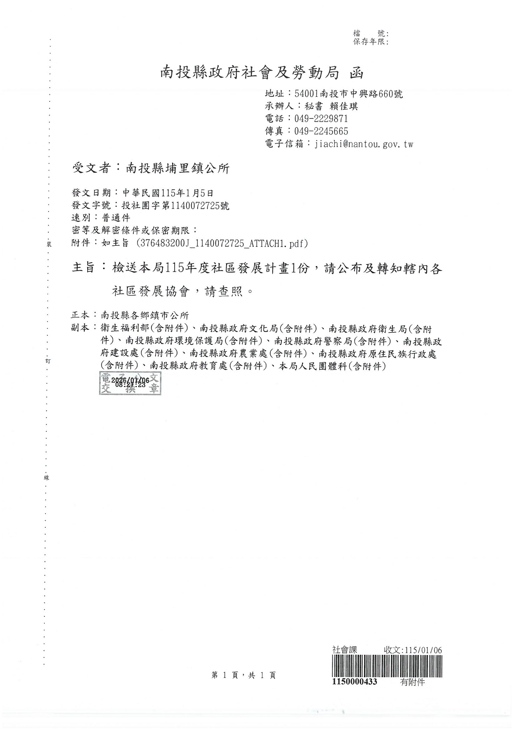 南投縣政府社會及勞動局 115年度社區發展計畫